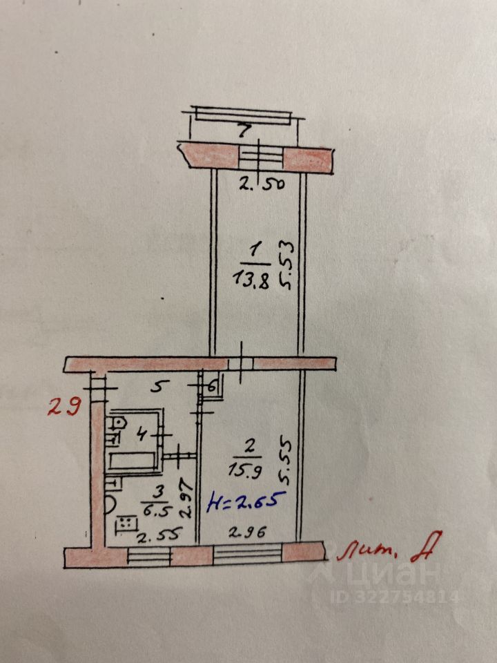Продается уютная двухкомнатная квартира в кирпичном доме 1969 года постройки. Общая площадь квартиры составляет 44,6 кв. м, жилая площадь — 29,7 кв. м, а кухня — 6,5 кв. м. Квартира расположена на 3-м этаже 5-этажного дома. Высота потолков — 2,65 метра. В квартире есть совмещенный санузел и балкон с видом на улицу и двор.