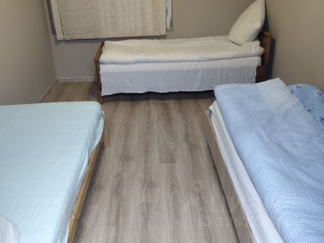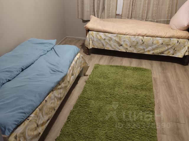 Комната 25 м.кв. Для бригады рабочих. Кровати двухъярусные деревянные, широкие, удобные, постельное белье предоставляется. Все удобства. Кухня просторная , холодильник двухкамерный, природный газ, 2 сан.узла, 2 душевые кабины. Вода горячая без отключения. Только по Договору бригаде рабочих от 8 человек.